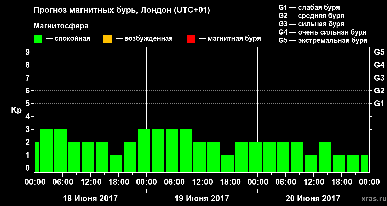 Прогноз магнитных бурь в Лондоне — 18 июня 2017 года