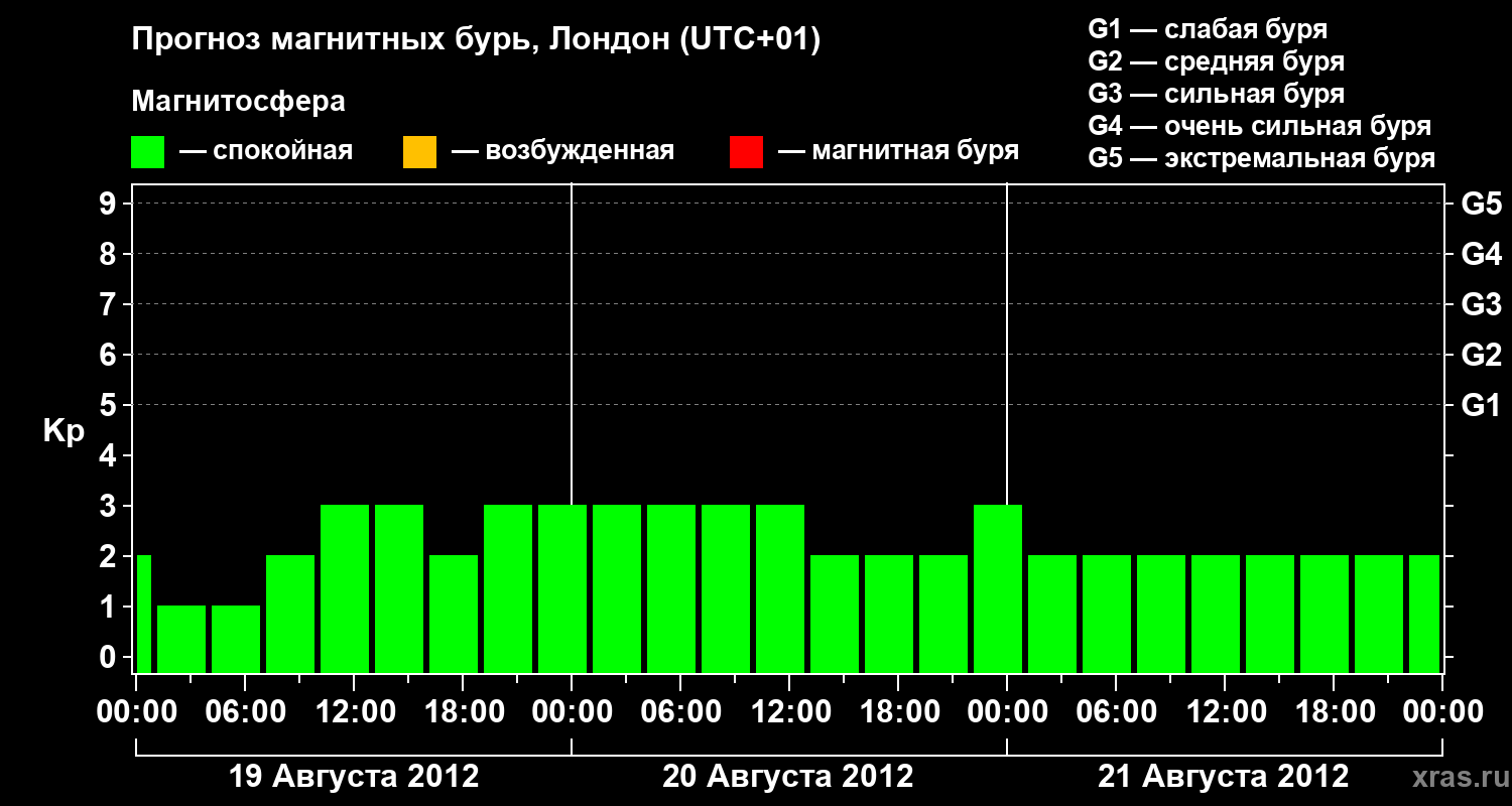 Прогноз магнитных бурь в Лондоне — 19 августа 2012 года