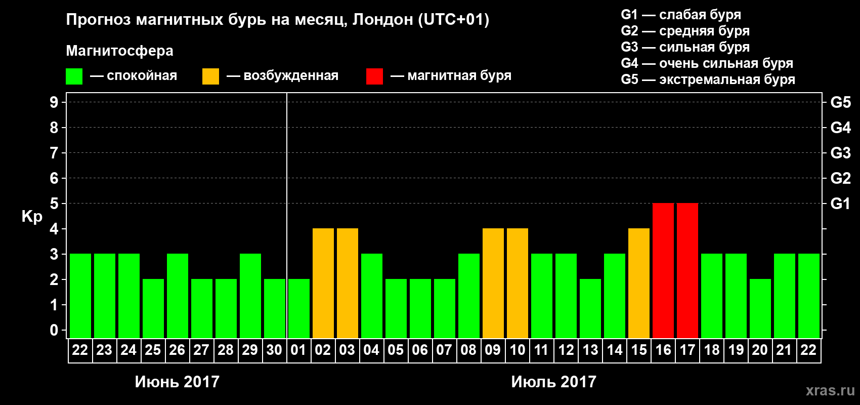 Прогноз магнитных бурь в Лондоне — 22 июня 2017 года