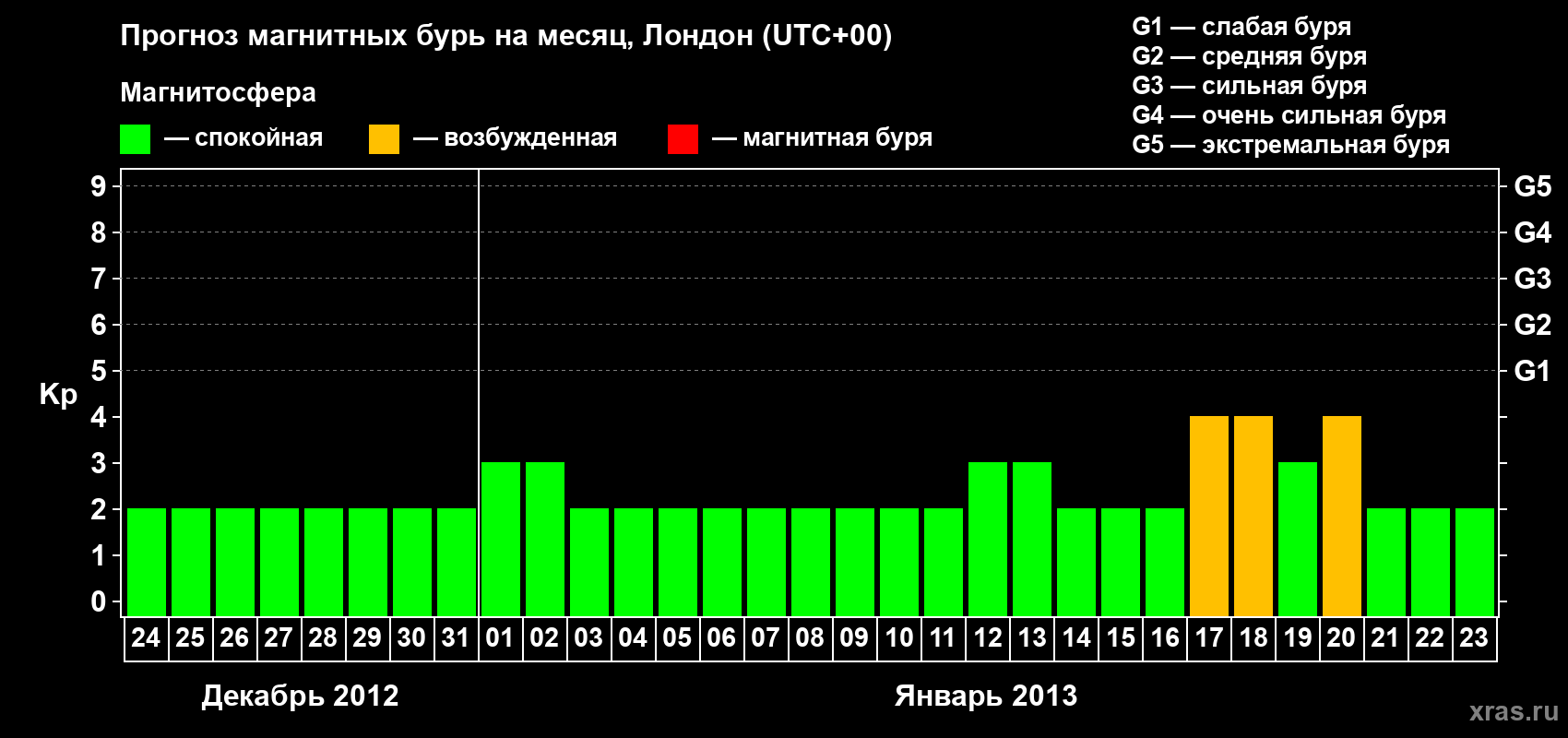 Прогноз магнитных бурь в Лондоне — 24 декабря 2012 года