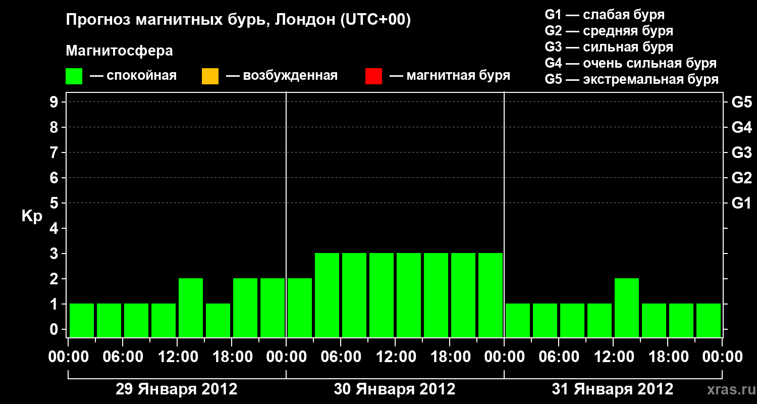 Прогноз магнитных бурь в Лондоне — 29 января 2012 года