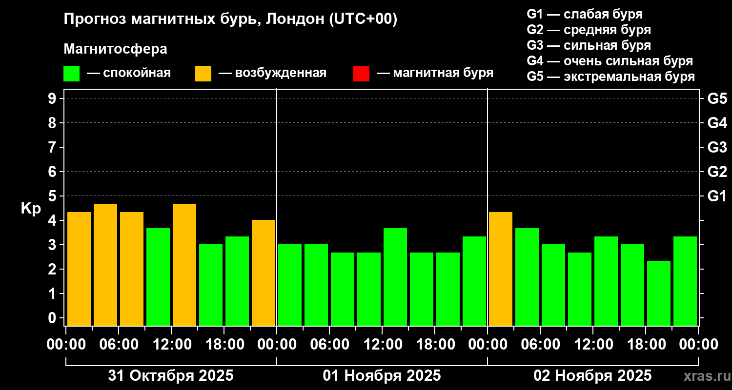 Прогноз магнитных бурь в Лондоне — 31 октября 2025 года