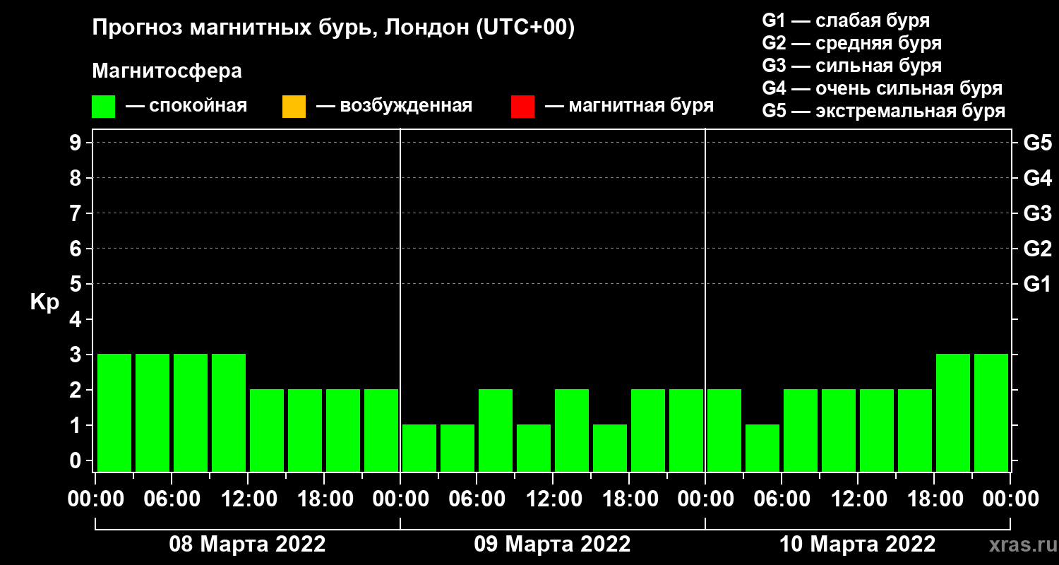 Прогноз магнитных бурь в Лондоне — 8 марта 2022 года