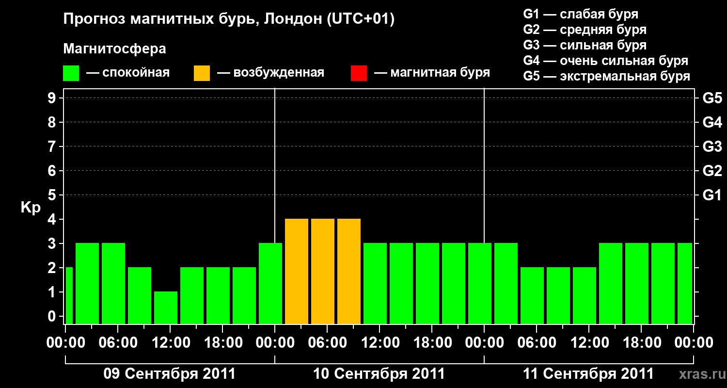 Прогноз магнитных бурь в Лондоне — 9 сентября 2011 года