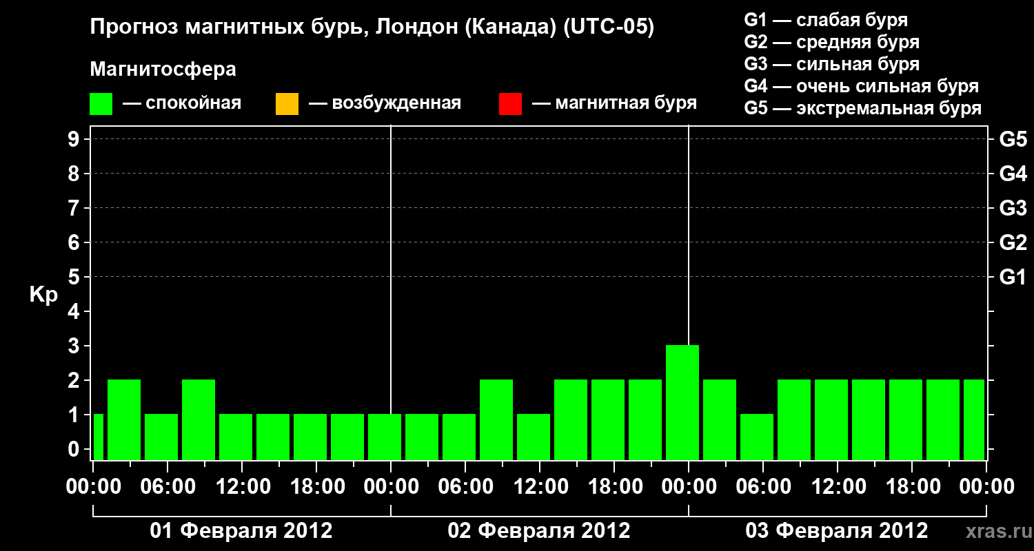 Прогноз магнитных бурь Лондоне (Канада) — 1 февраля 2012 года