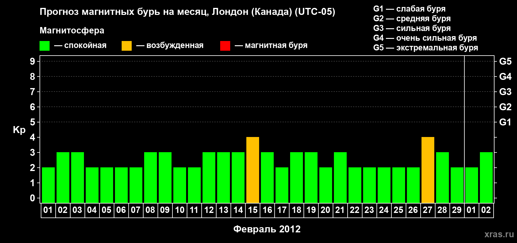 Прогноз магнитных бурь Лондоне (Канада) на 1 февраля 2012 года