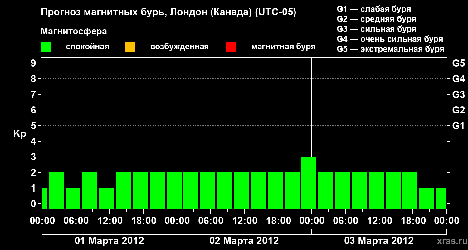 Прогноз магнитных бурь Лондоне (Канада) на 1 марта 2012 года