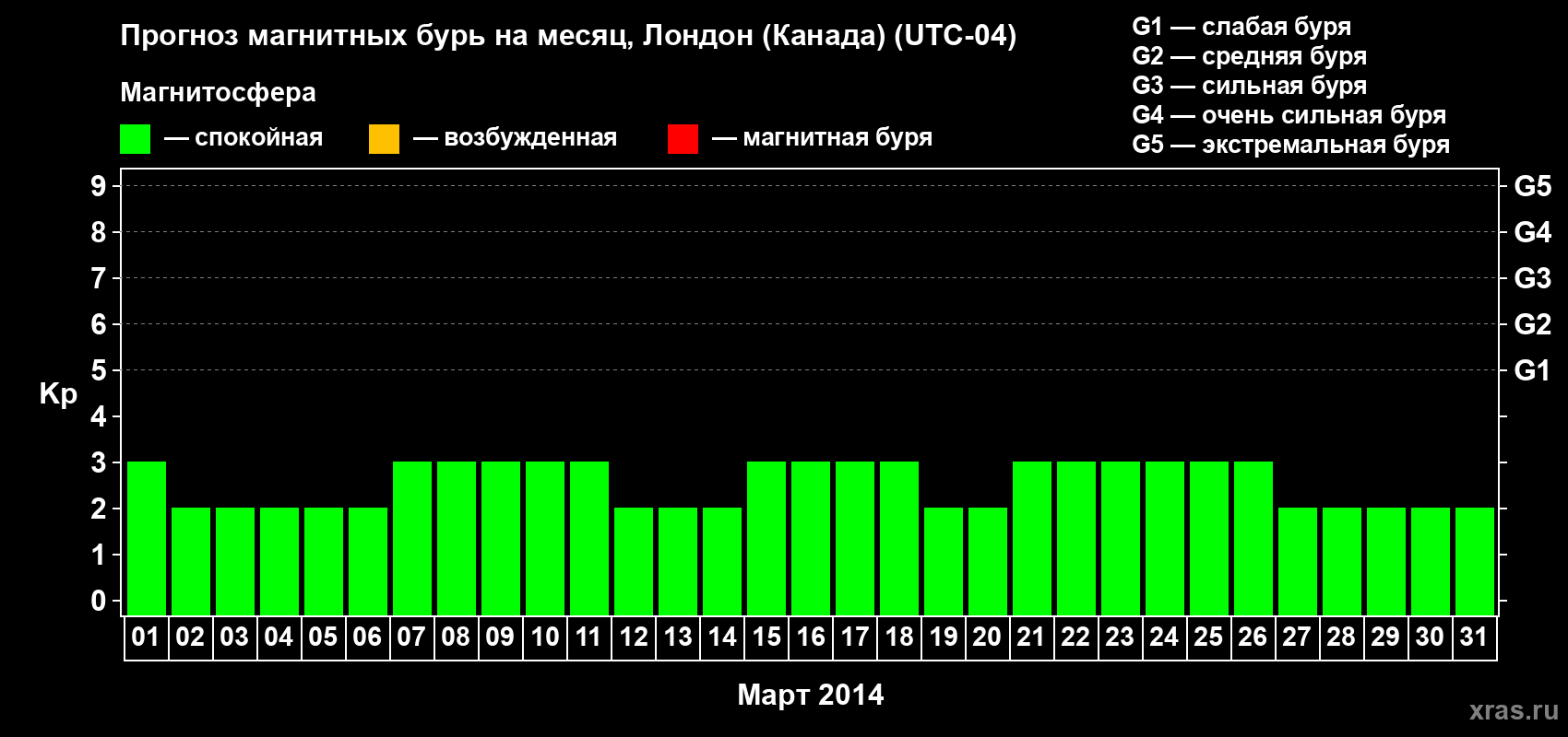 Прогноз магнитных бурь Лондоне (Канада) — 1 марта 2014 года