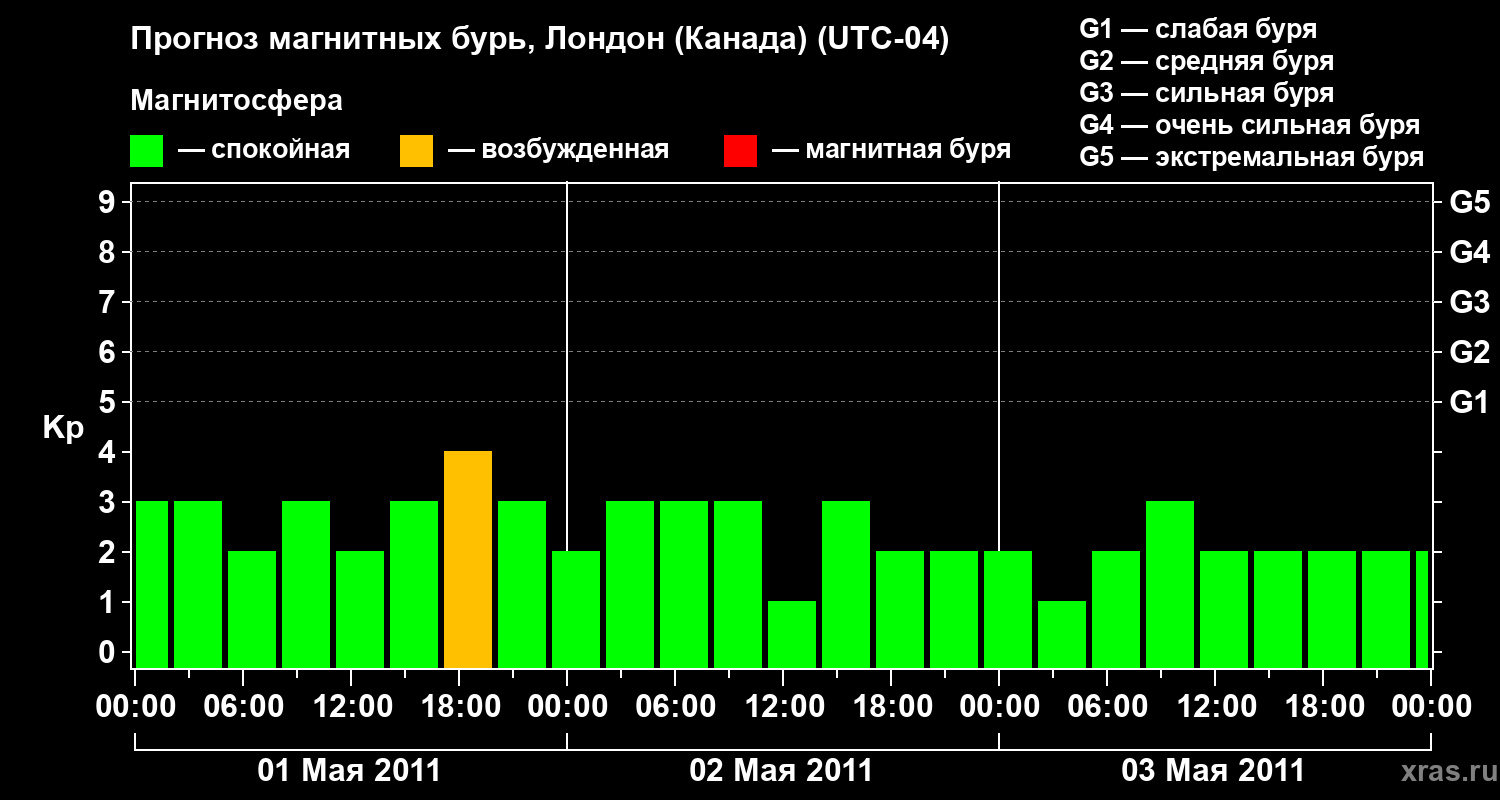 Прогноз магнитных бурь Лондоне (Канада) — 1 мая 2011 года