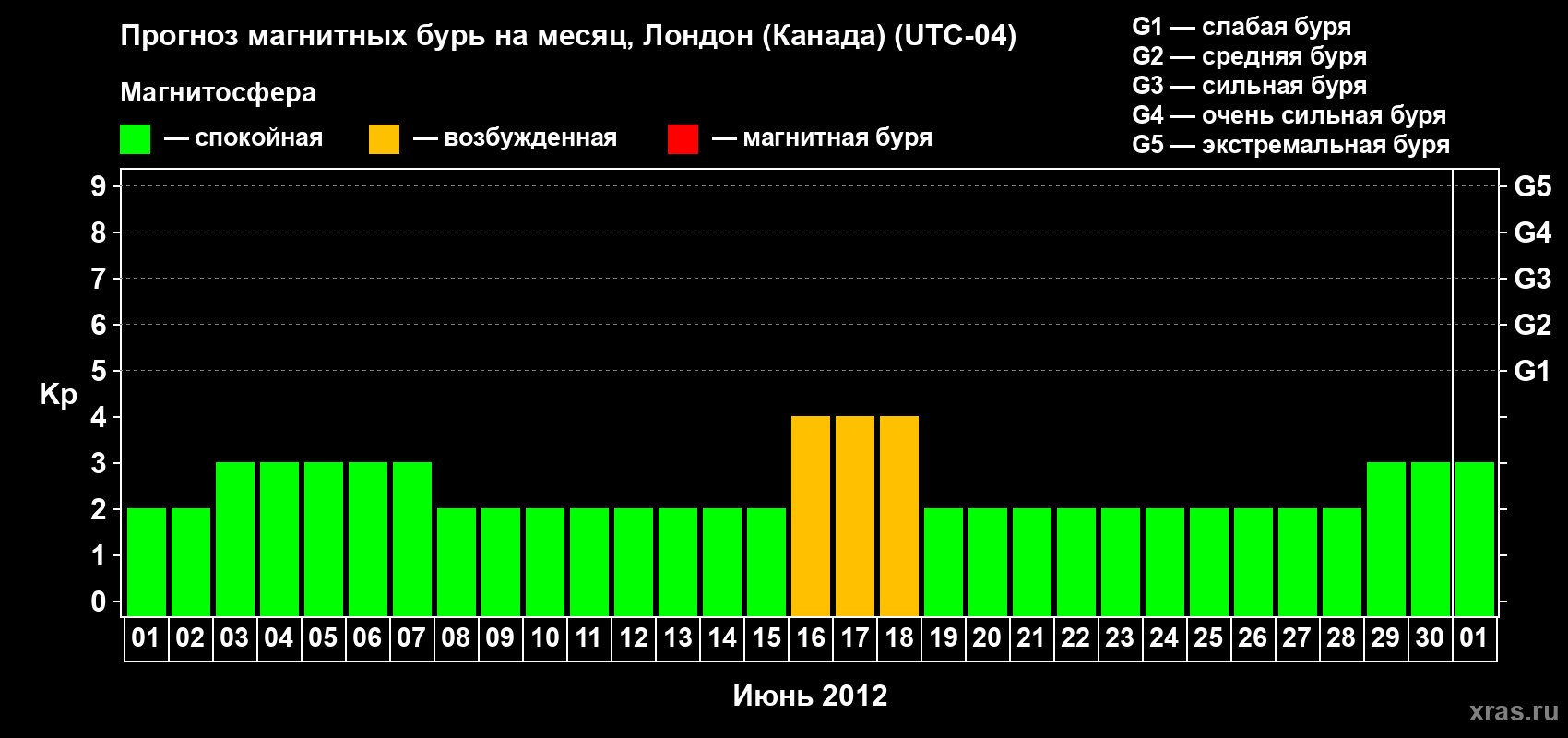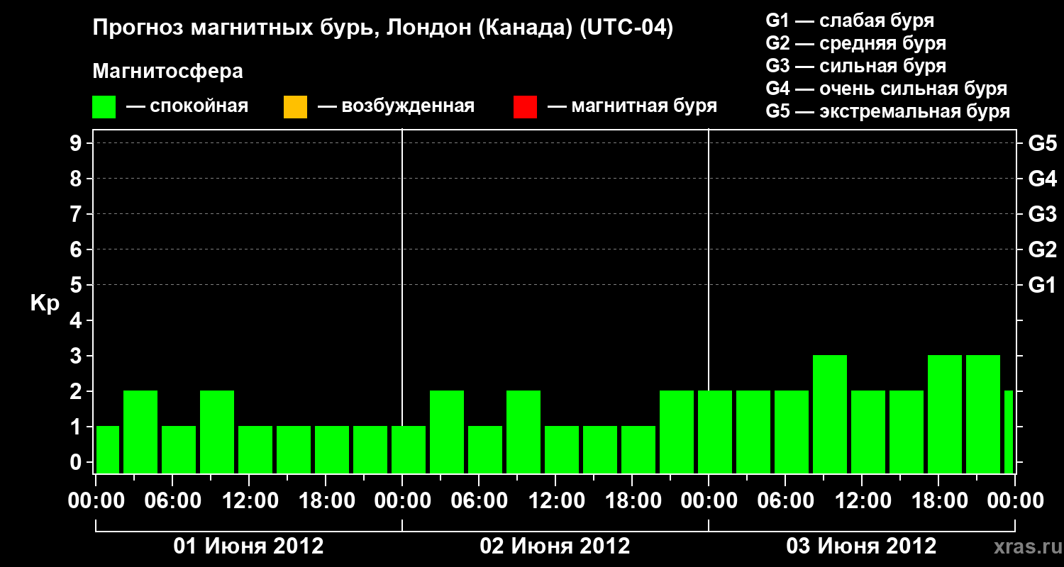 Прогноз магнитных бурь Лондоне (Канада) — 1 июня 2012 года