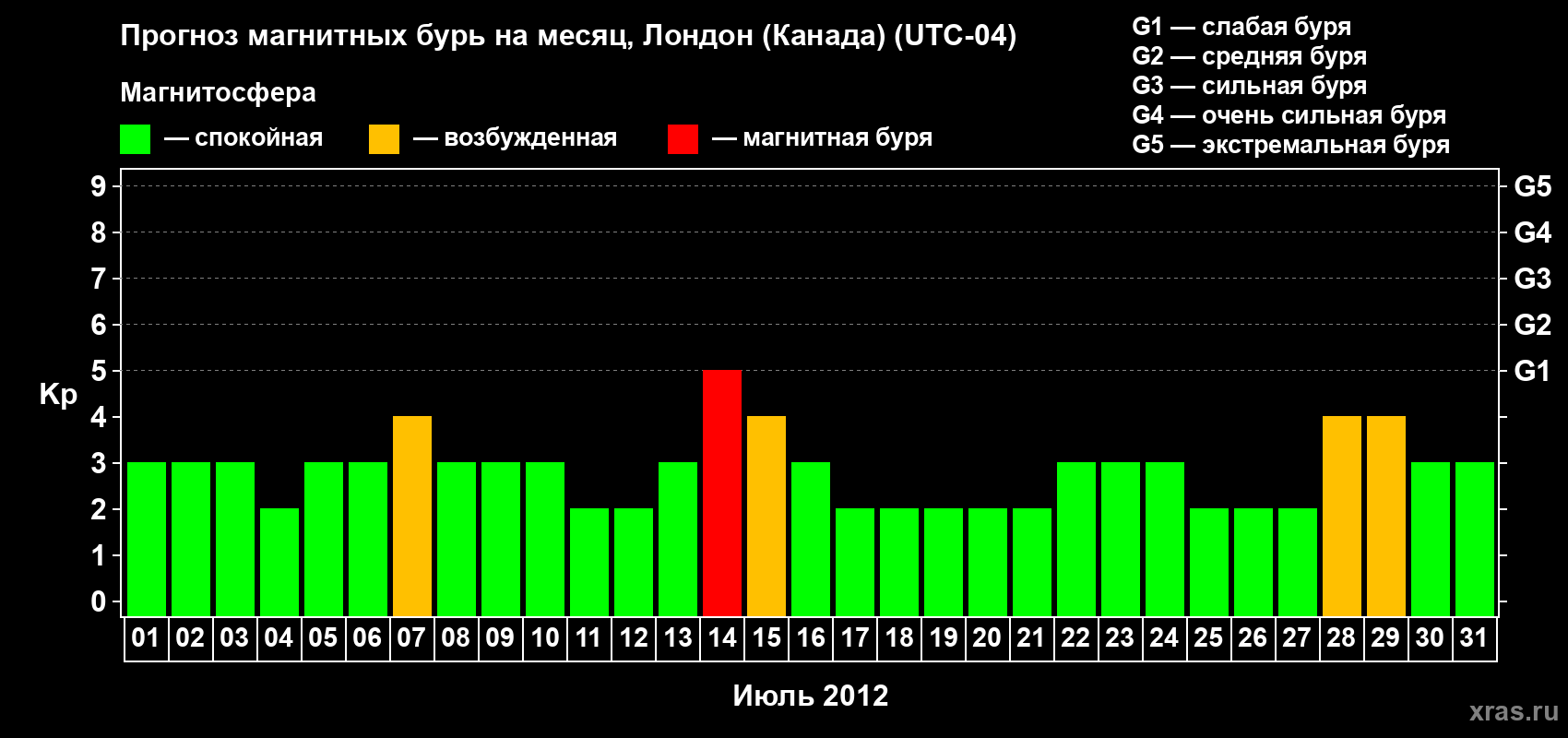 Прогноз магнитных бурь Лондоне (Канада) — 1 июля 2012 года