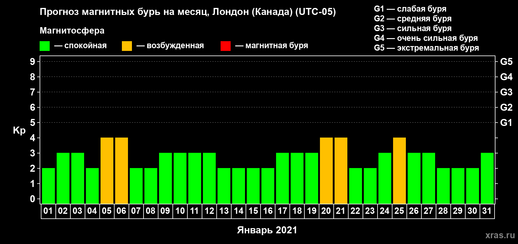 Прогноз магнитных бурь Лондоне (Канада) — 1 января 2021 года