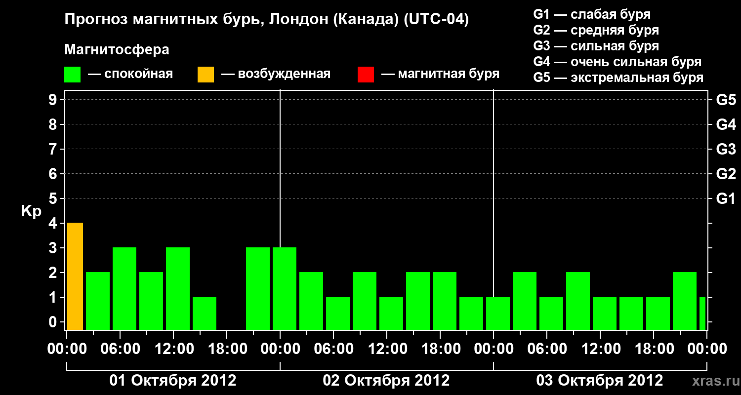 Прогноз магнитных бурь Лондоне (Канада) — 1 октября 2012 года