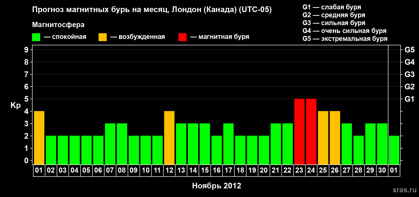 Прогноз магнитных бурь Лондоне (Канада) — 1 ноября 2012 года