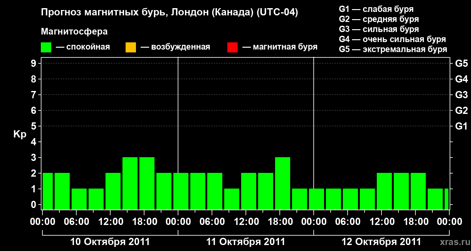 Прогноз магнитных бурь Лондоне (Канада) на 10 октября 2011 года