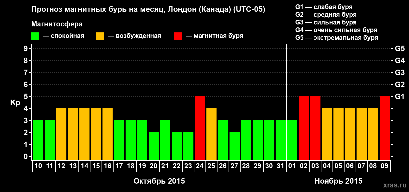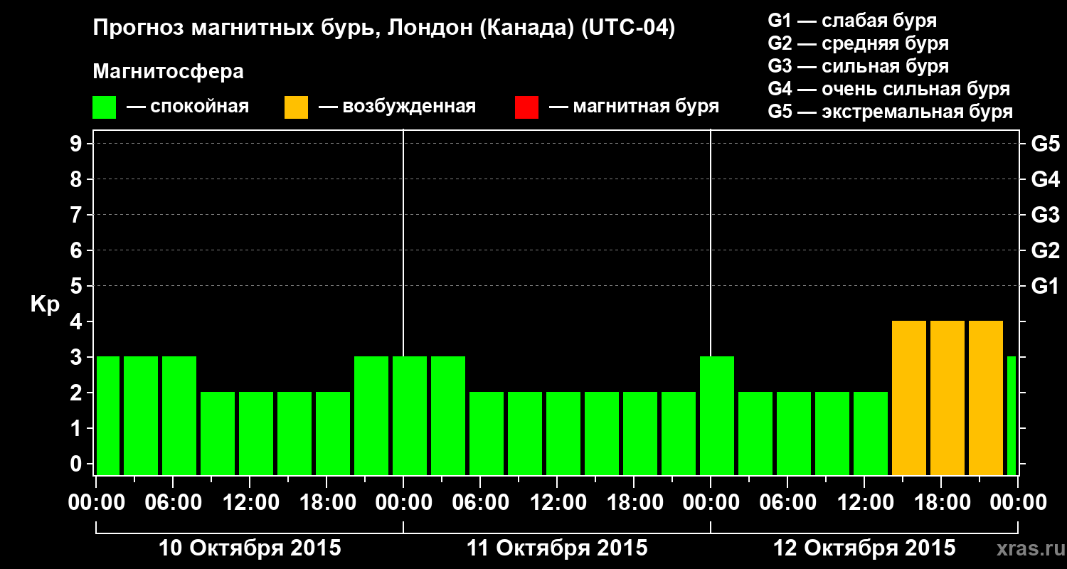 Прогноз магнитных бурь Лондоне (Канада) — 10 октября 2015 года