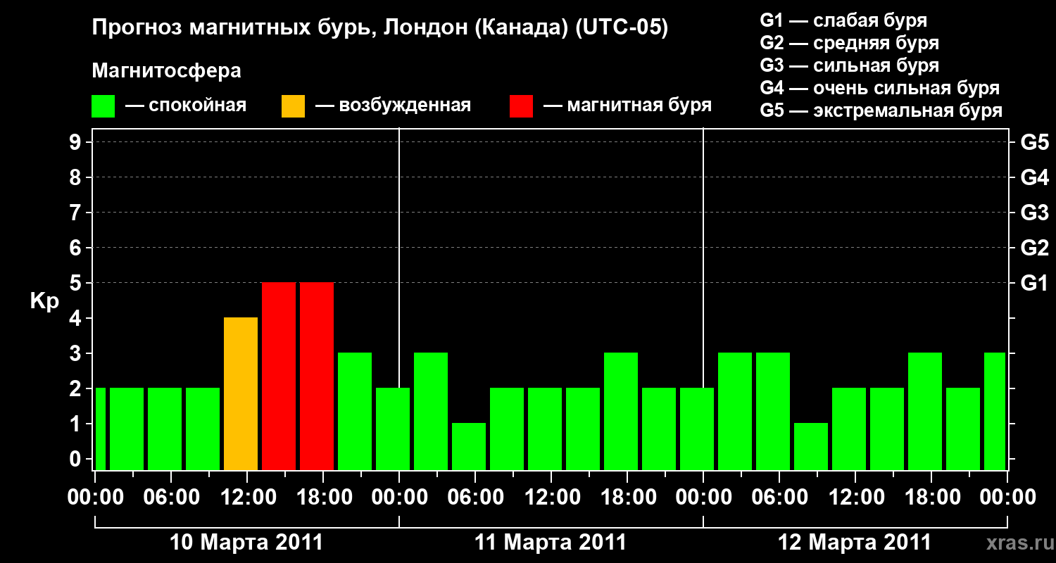 Прогноз магнитных бурь Лондоне (Канада) — 10 марта 2011 года