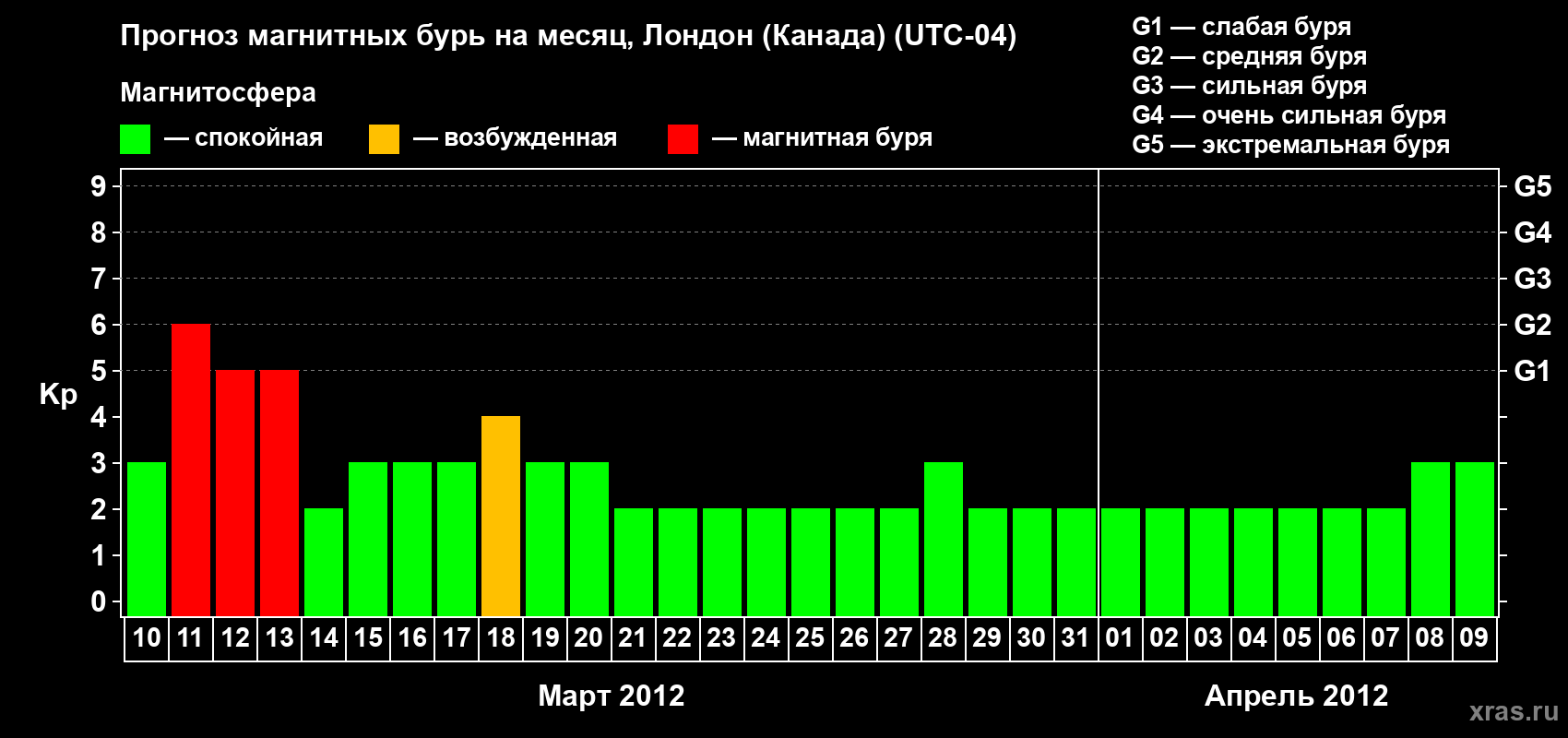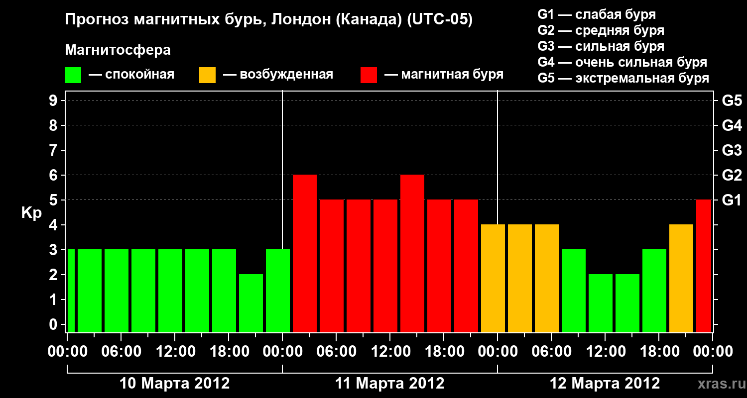 Прогноз магнитных бурь Лондоне (Канада) — 10 марта 2012 года