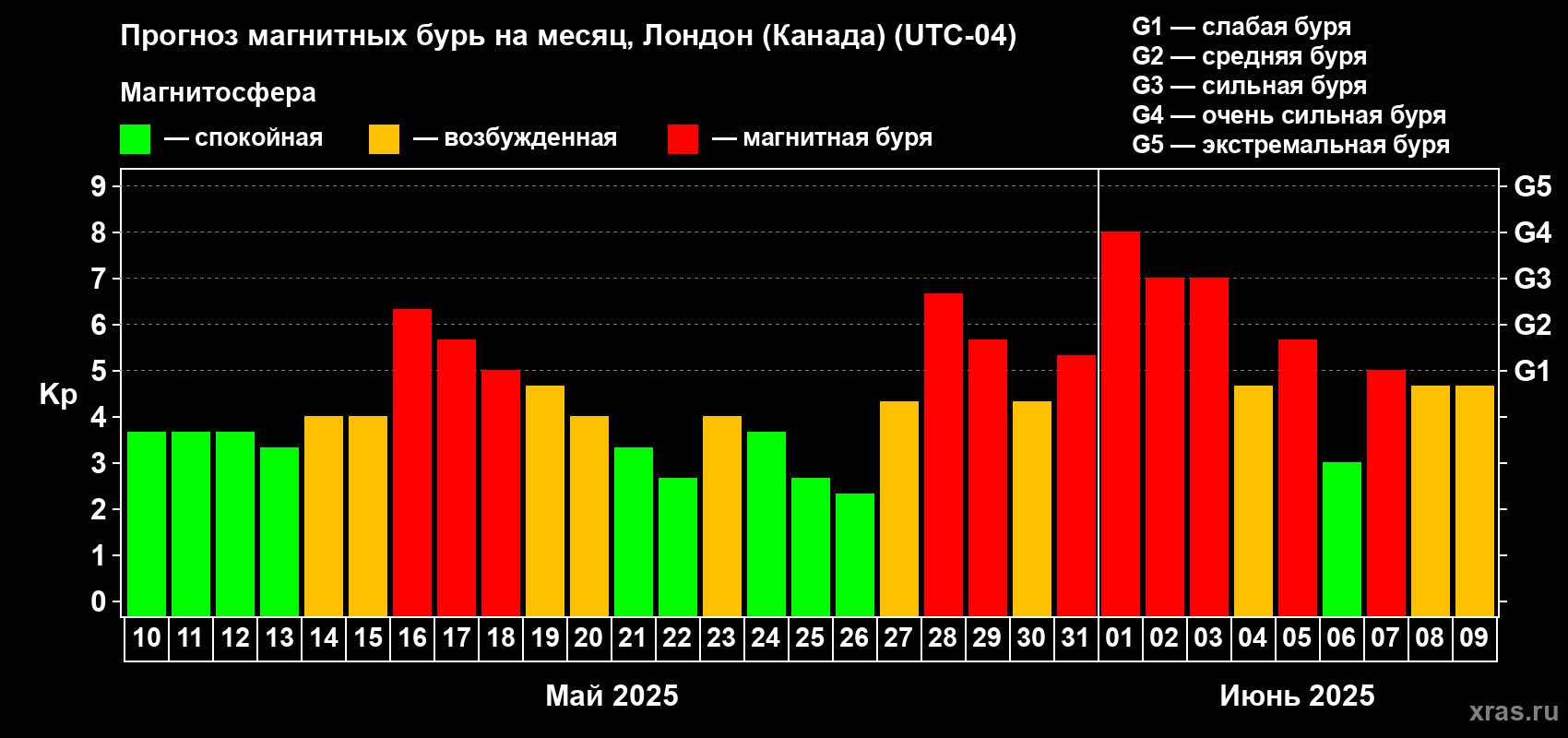 Прогноз магнитных бурь Лондоне (Канада) — 10 мая 2025 года