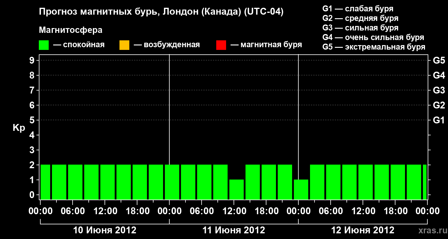 Прогноз магнитных бурь Лондоне (Канада) — 10 июня 2012 года