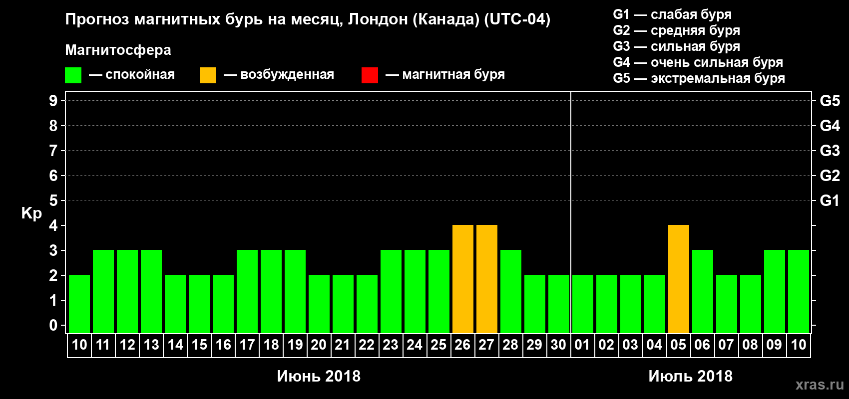 Прогноз магнитных бурь Лондоне (Канада) — 10 июня 2018 года