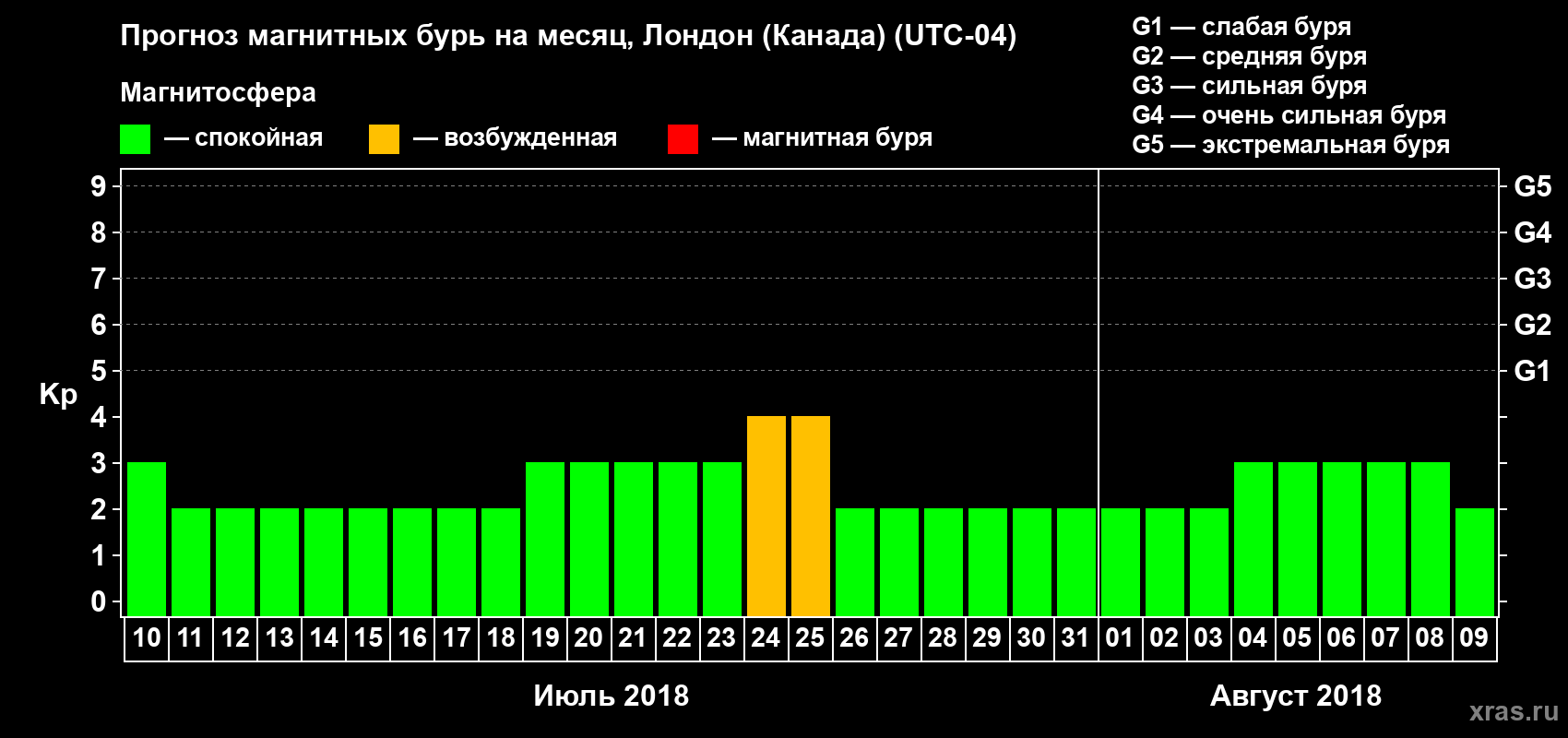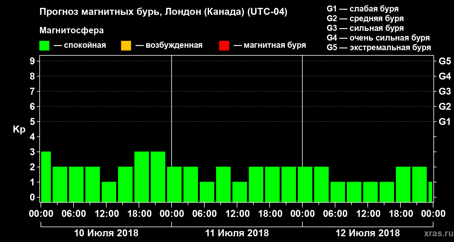 Прогноз магнитных бурь Лондоне (Канада) — 10 июля 2018 года