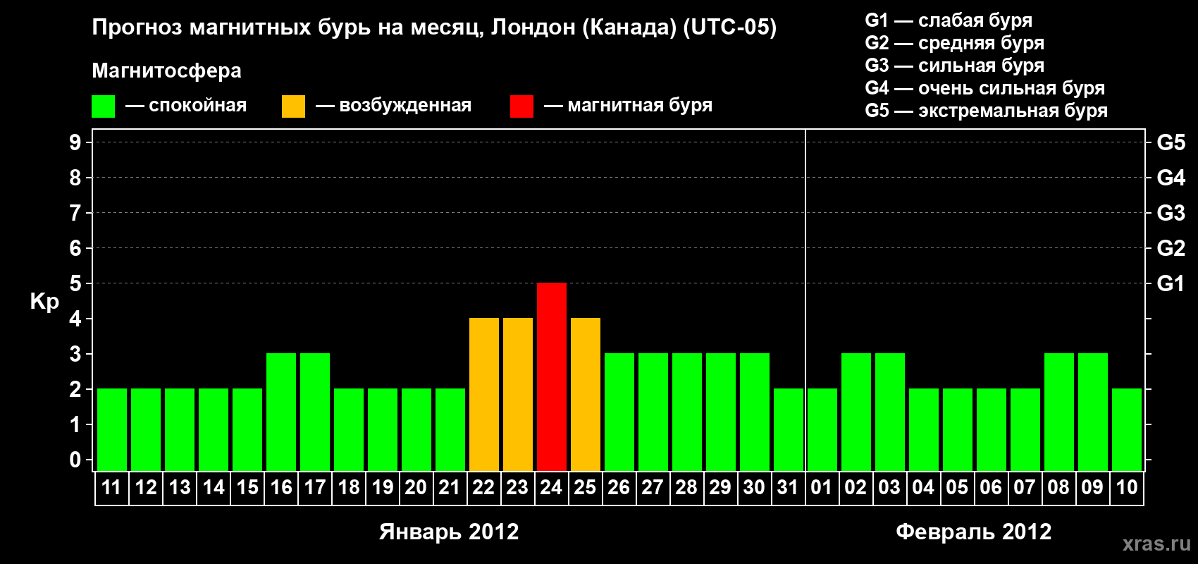 Прогноз магнитных бурь Лондоне (Канада) — 11 января 2012 года