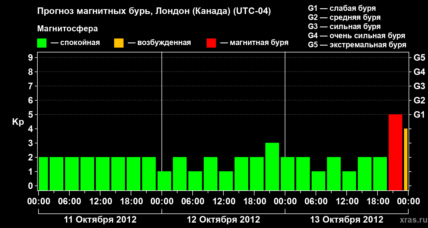 Прогноз магнитных бурь Лондоне (Канада) — 11 октября 2012 года