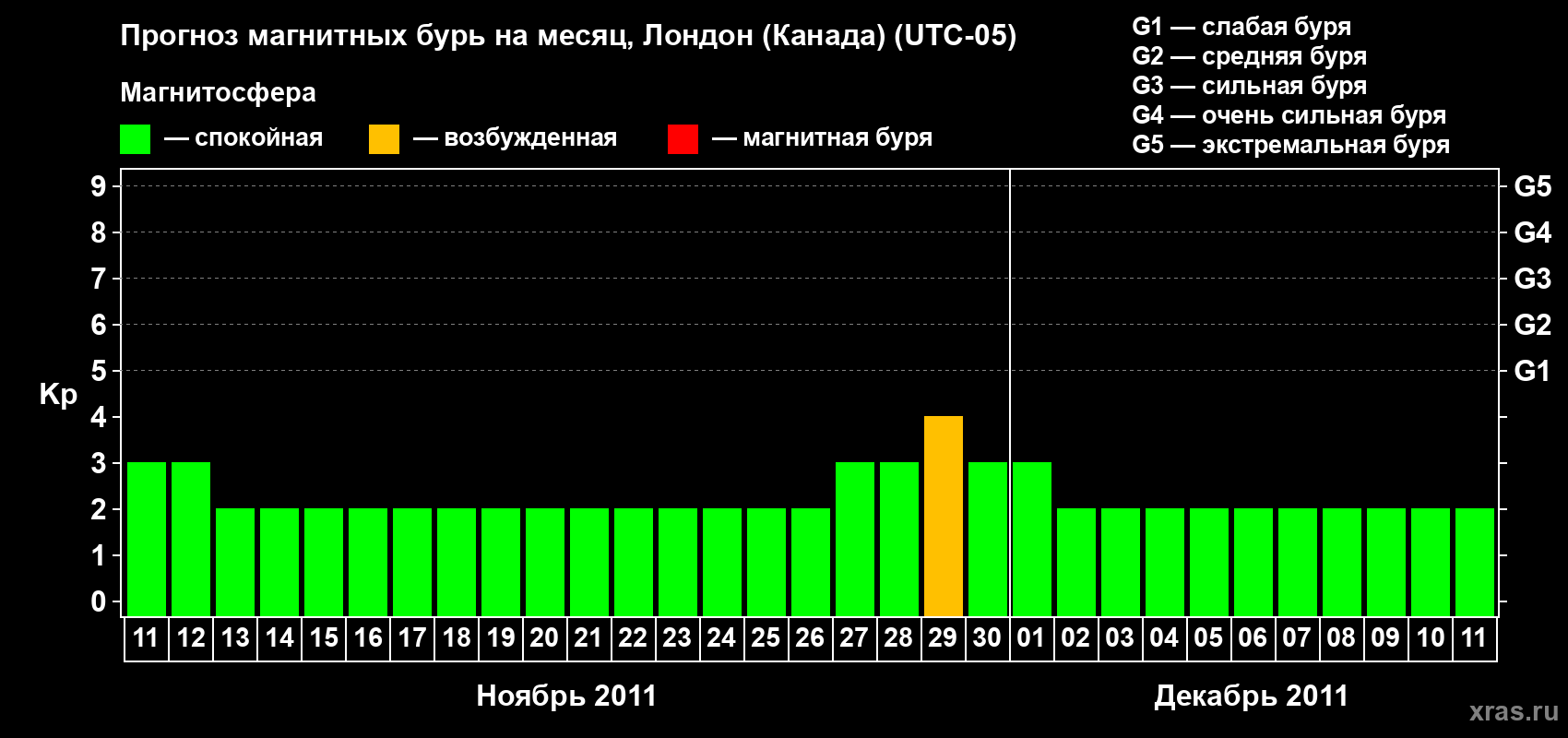 Прогноз магнитных бурь Лондоне (Канада) — 11 ноября 2011 года