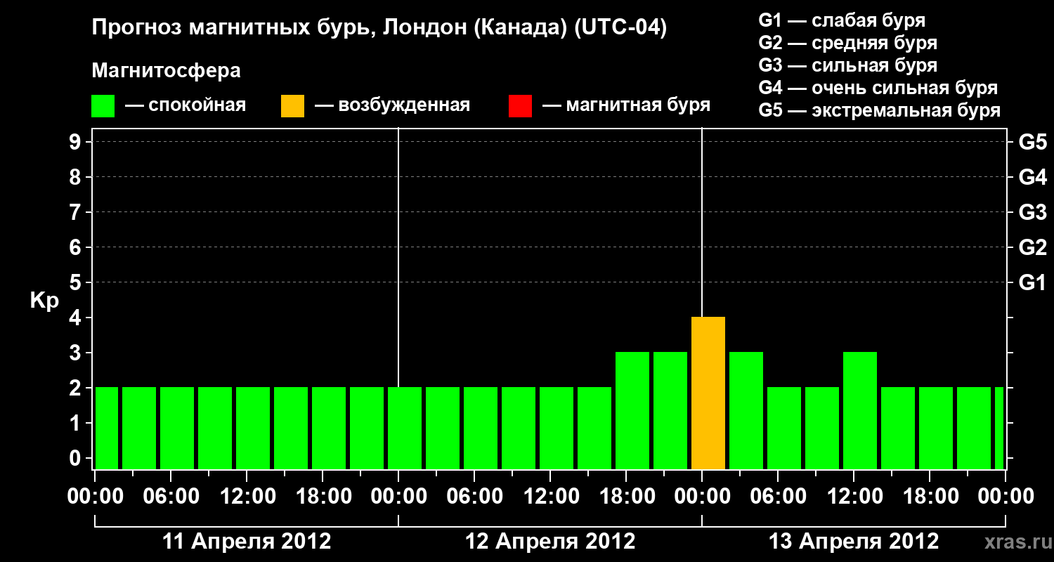 Прогноз магнитных бурь Лондоне (Канада) — 11 апреля 2012 года