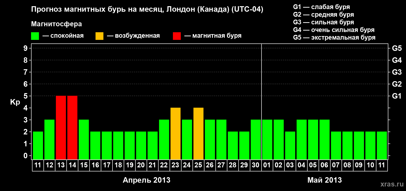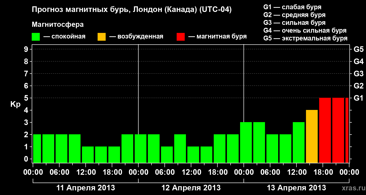 Прогноз магнитных бурь Лондоне (Канада) — 11 апреля 2013 года