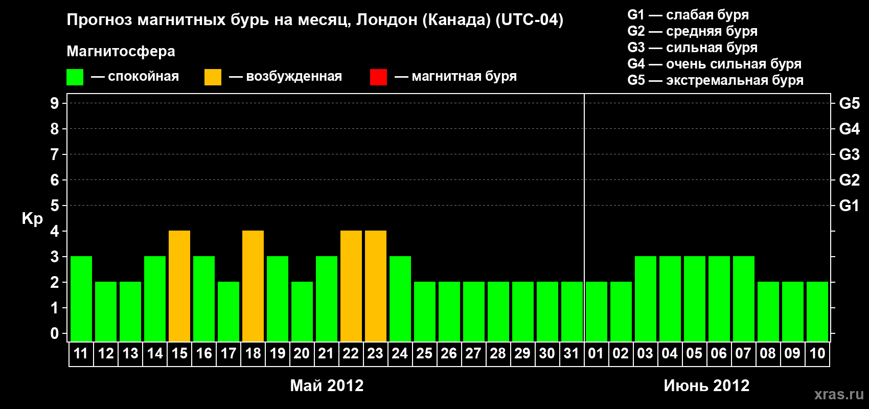 Прогноз магнитных бурь Лондоне (Канада) — 11 мая 2012 года