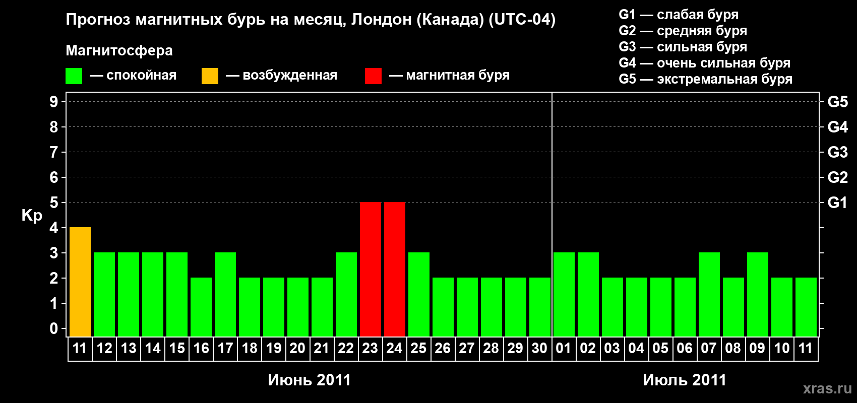 Прогноз магнитных бурь Лондоне (Канада) — 11 июня 2011 года