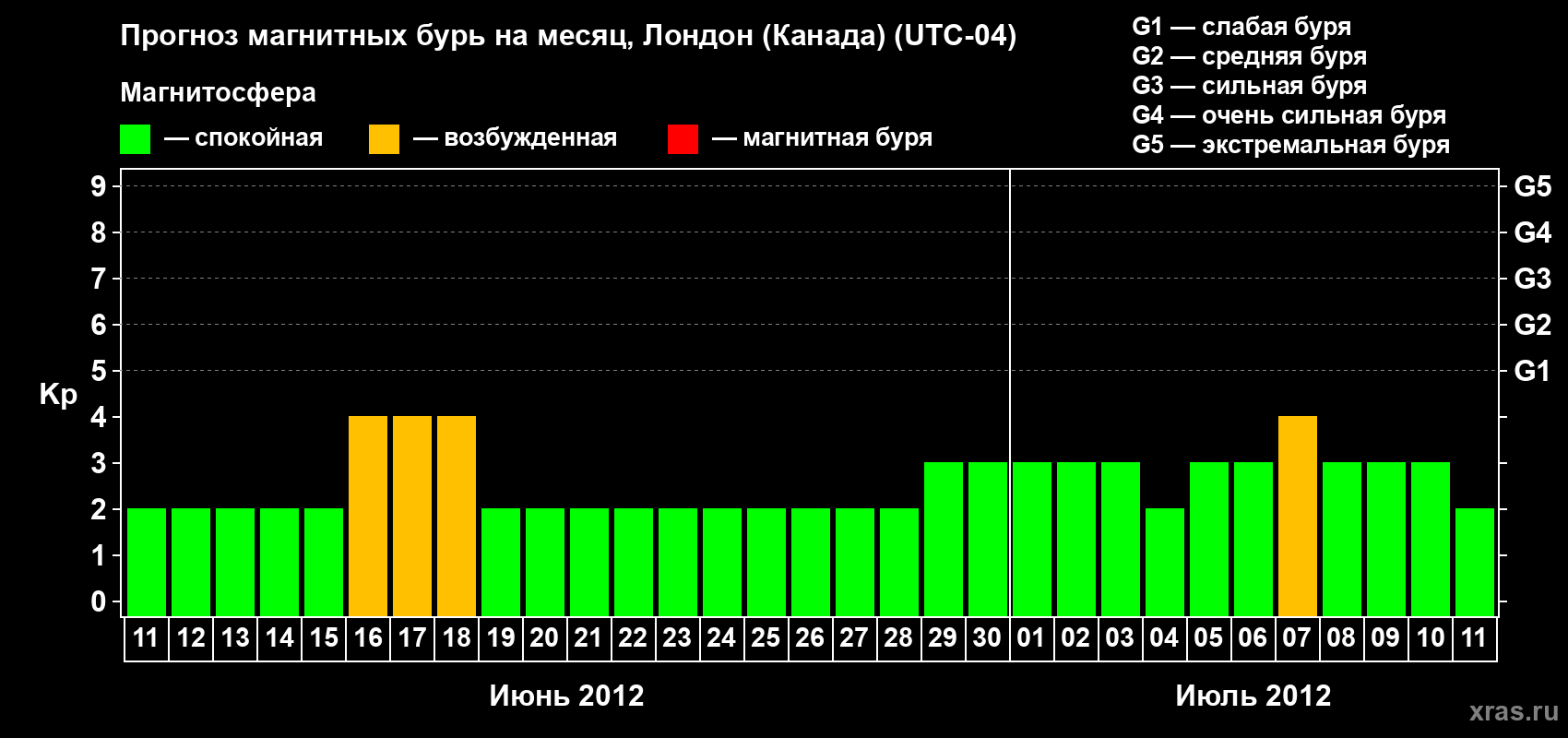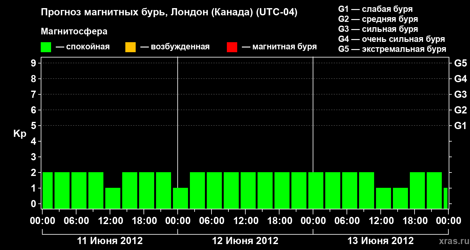 Прогноз магнитных бурь Лондоне (Канада) — 11 июня 2012 года