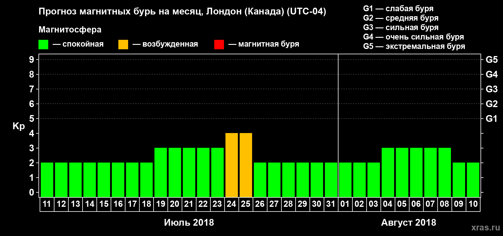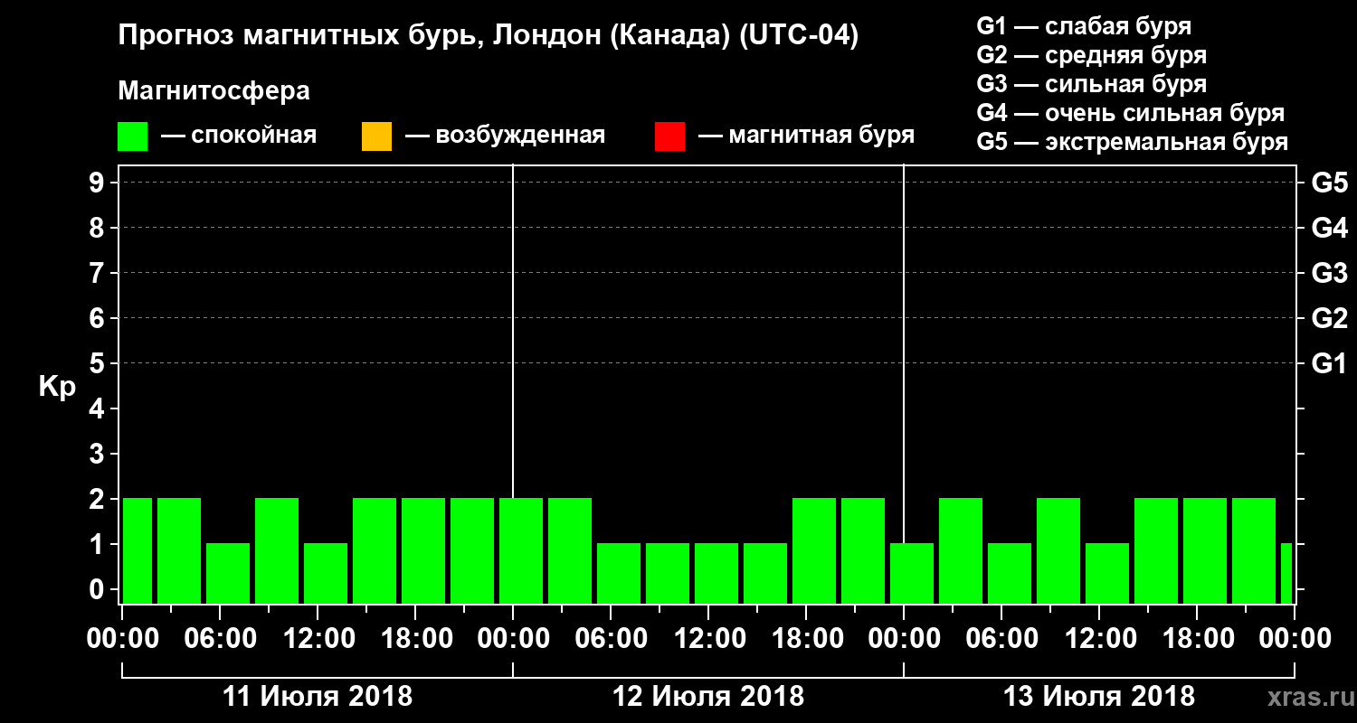 Прогноз магнитных бурь Лондоне (Канада) — 11 июля 2018 года