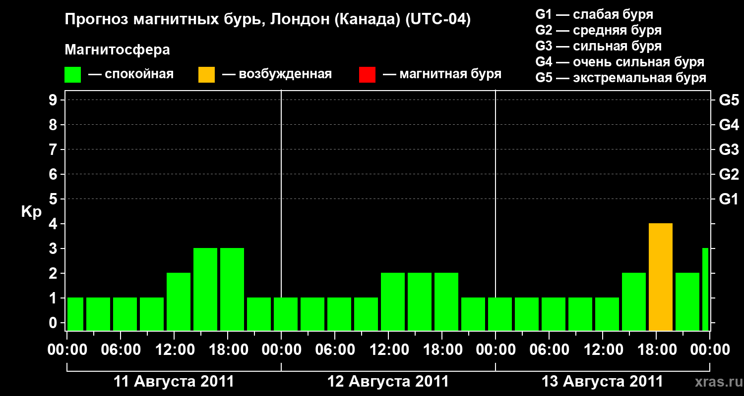 Прогноз магнитных бурь Лондоне (Канада) на 11 августа 2011 года