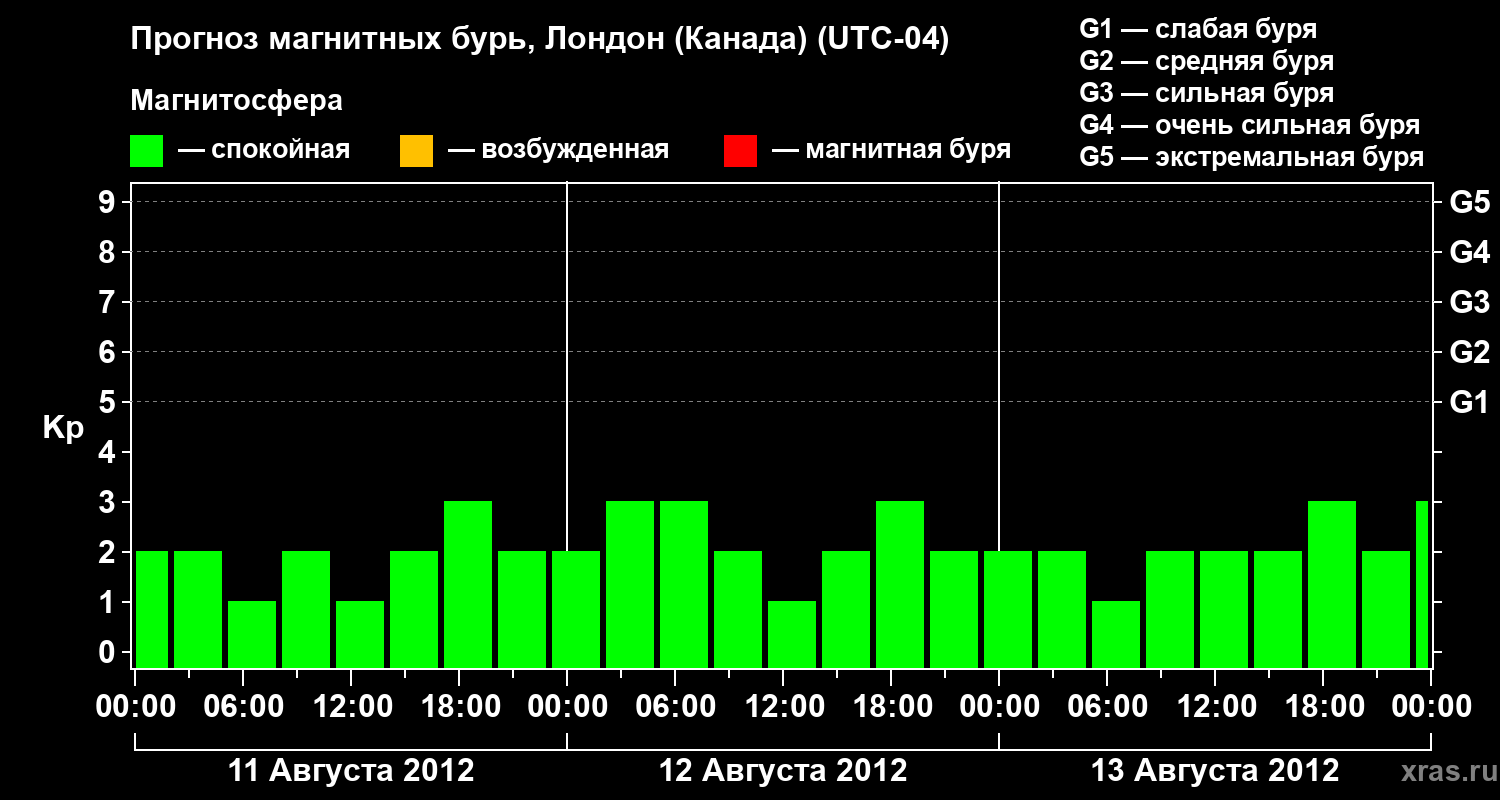 Прогноз магнитных бурь Лондоне (Канада) на 11 августа 2012 года
