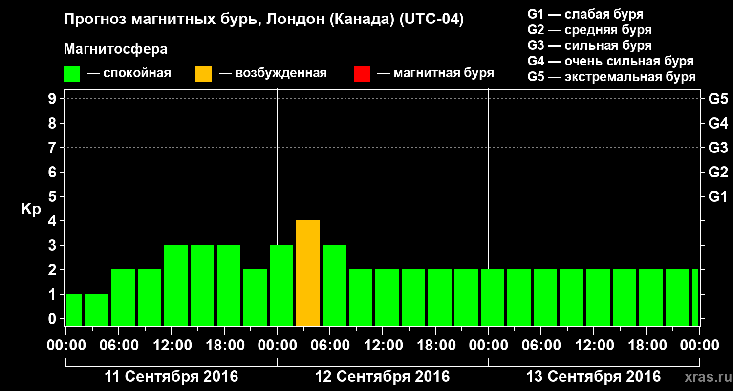 Прогноз магнитных бурь Лондоне (Канада) — 11 сентября 2016 года