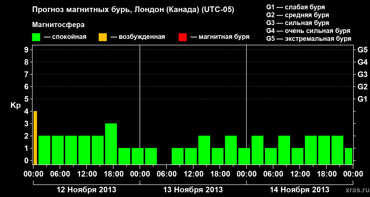 Прогноз магнитных бурь Лондоне (Канада) — 12 ноября 2013 года