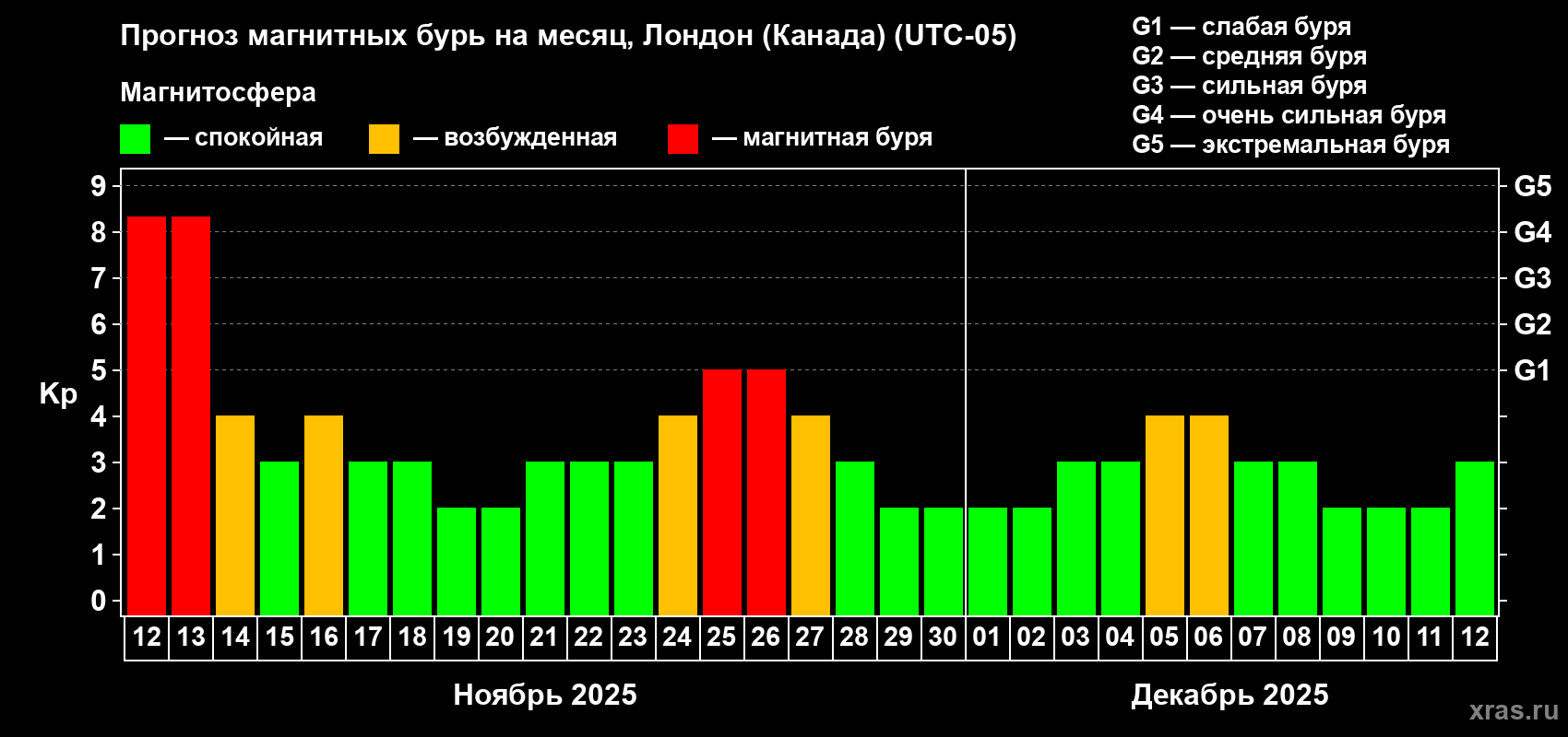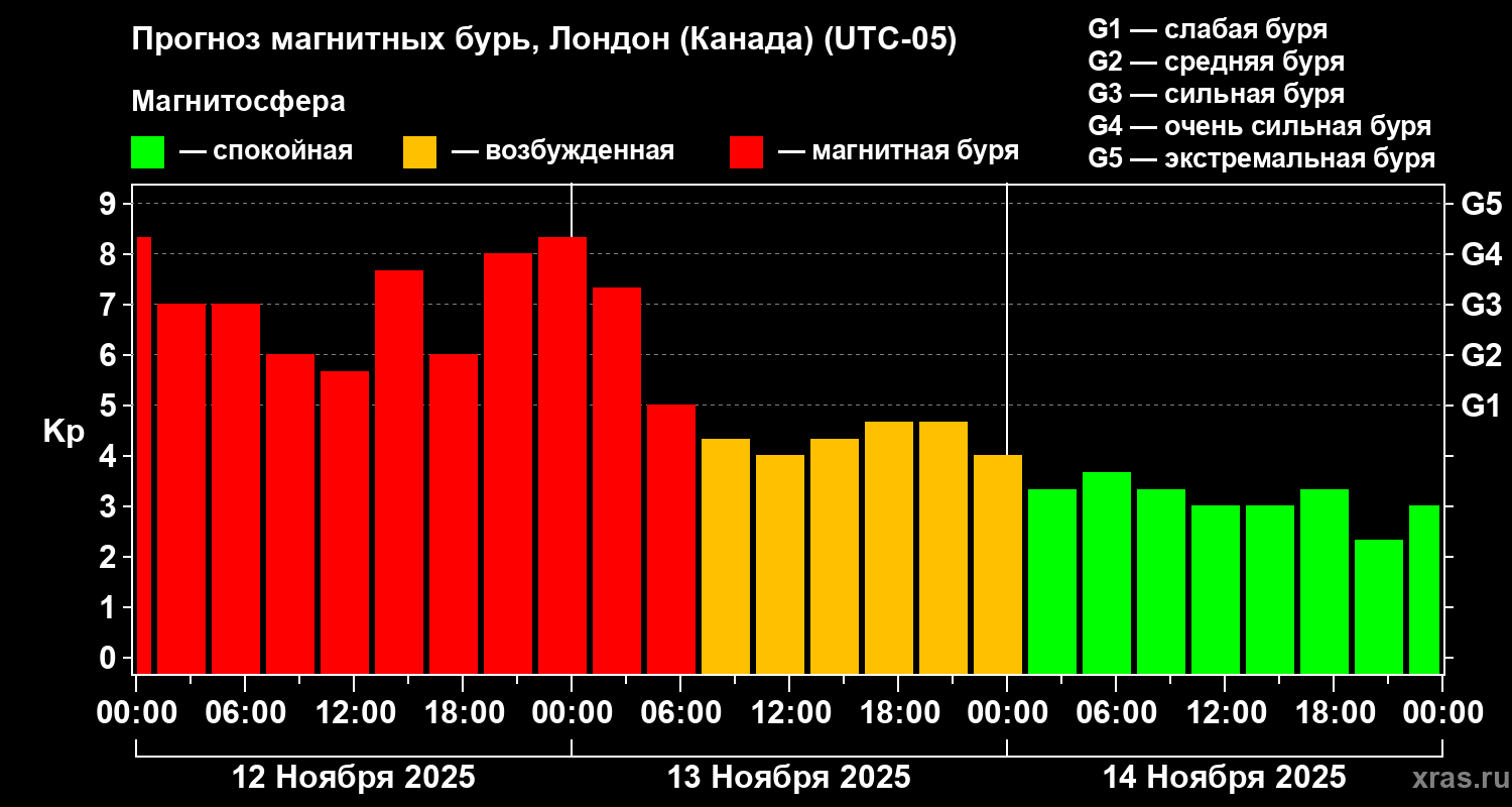 Прогноз магнитных бурь Лондоне (Канада) — 12 ноября 2025 года