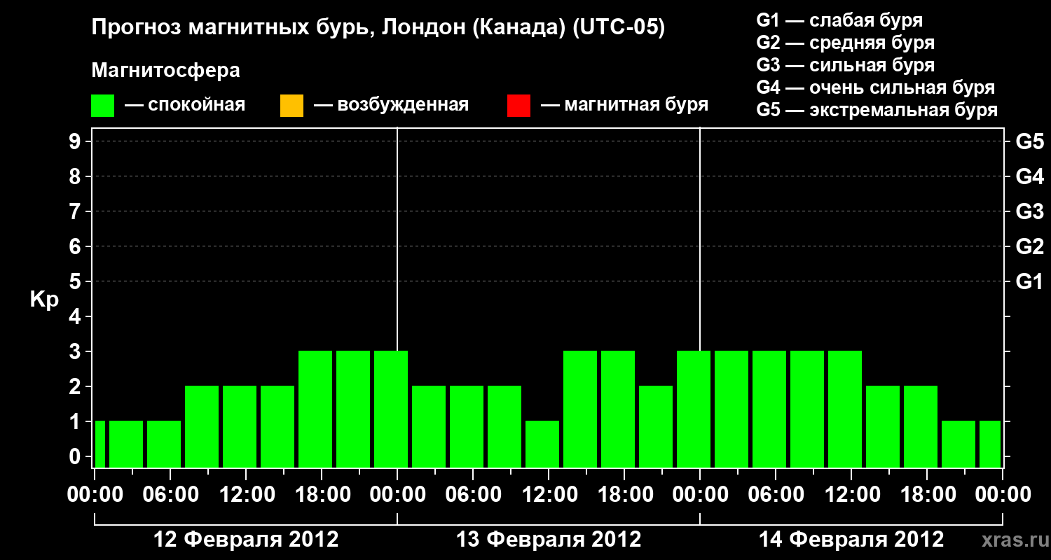 Прогноз магнитных бурь Лондоне (Канада) — 12 февраля 2012 года