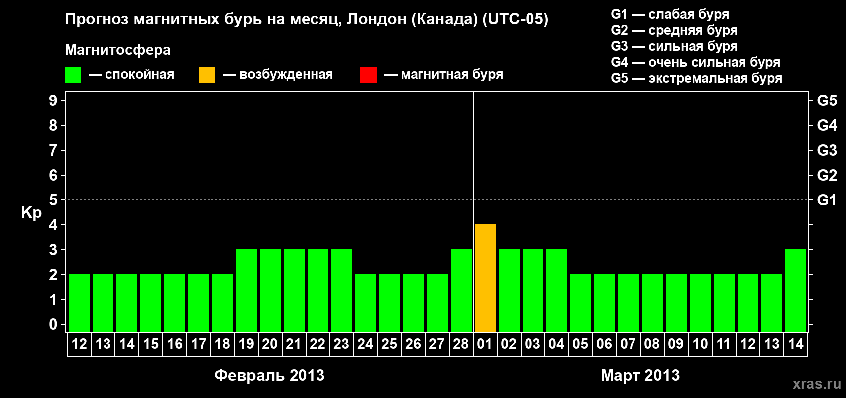 Прогноз магнитных бурь Лондоне (Канада) — 12 февраля 2013 года