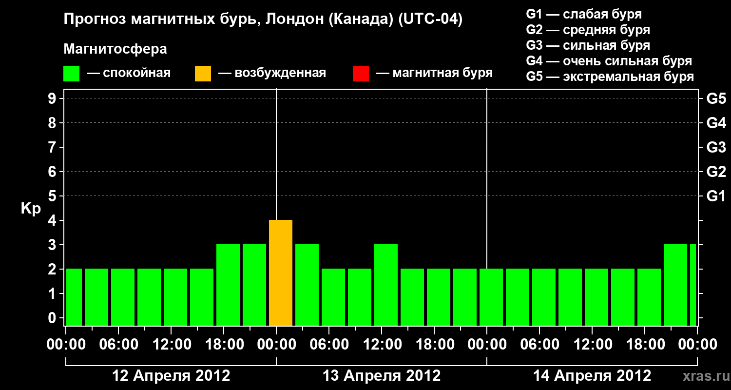Прогноз магнитных бурь Лондоне (Канада) — 12 апреля 2012 года
