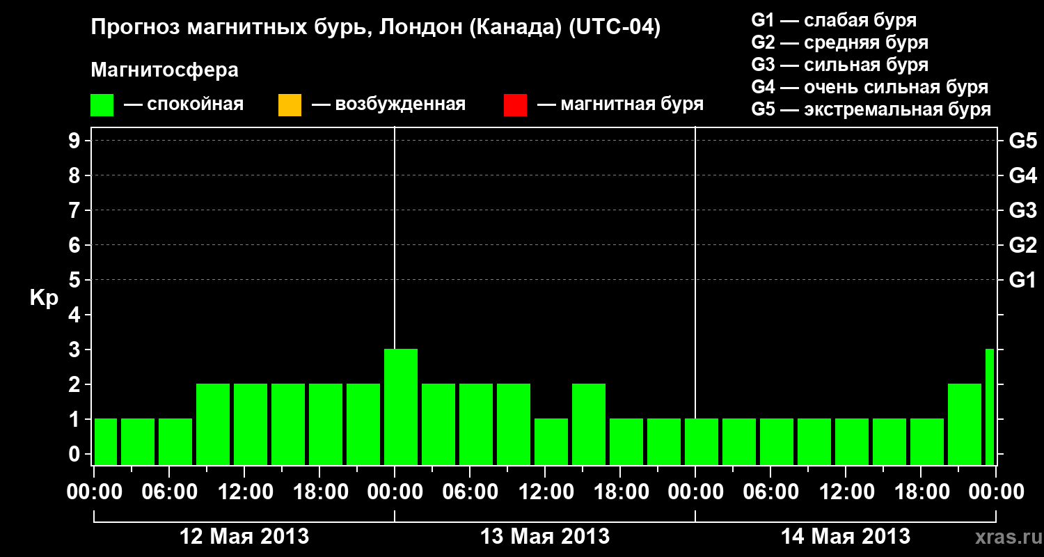 Прогноз магнитных бурь Лондоне (Канада) — 12 мая 2013 года