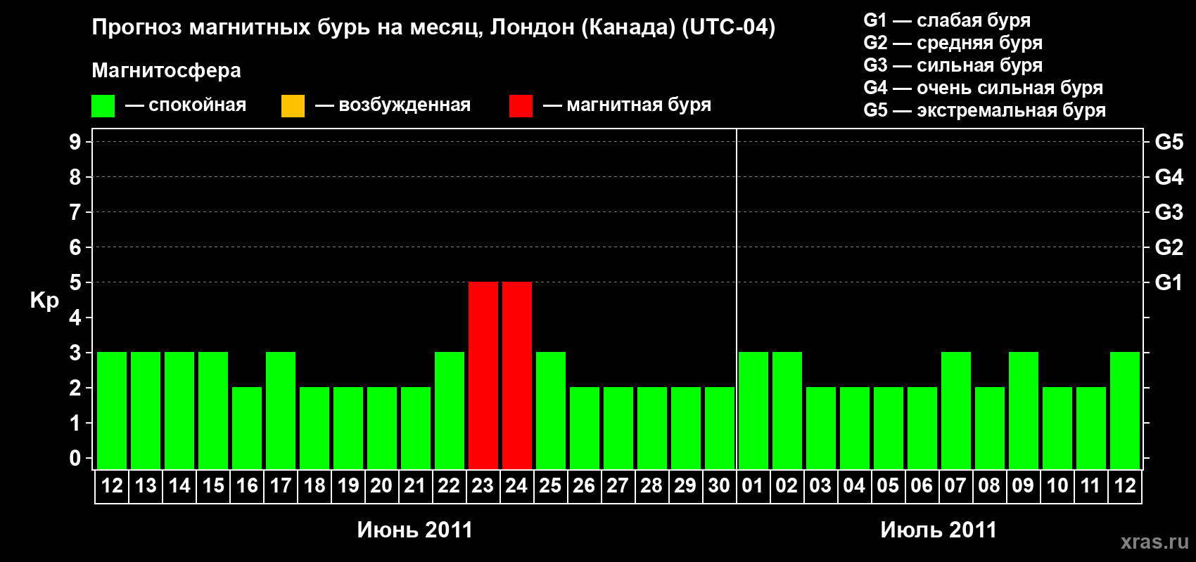 Прогноз магнитных бурь Лондоне (Канада) — 12 июня 2011 года