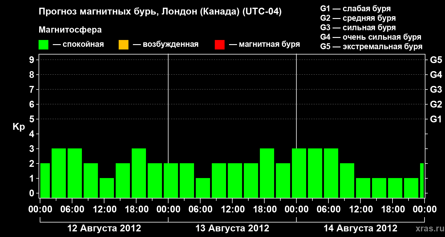 Прогноз магнитных бурь Лондоне (Канада) — 12 августа 2012 года