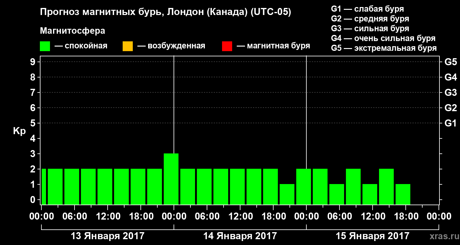 Прогноз магнитных бурь Лондоне (Канада) — 13 января 2017 года