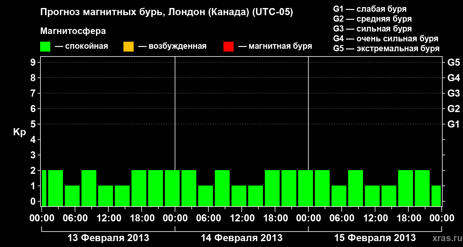 Прогноз магнитных бурь Лондоне (Канада) — 13 февраля 2013 года