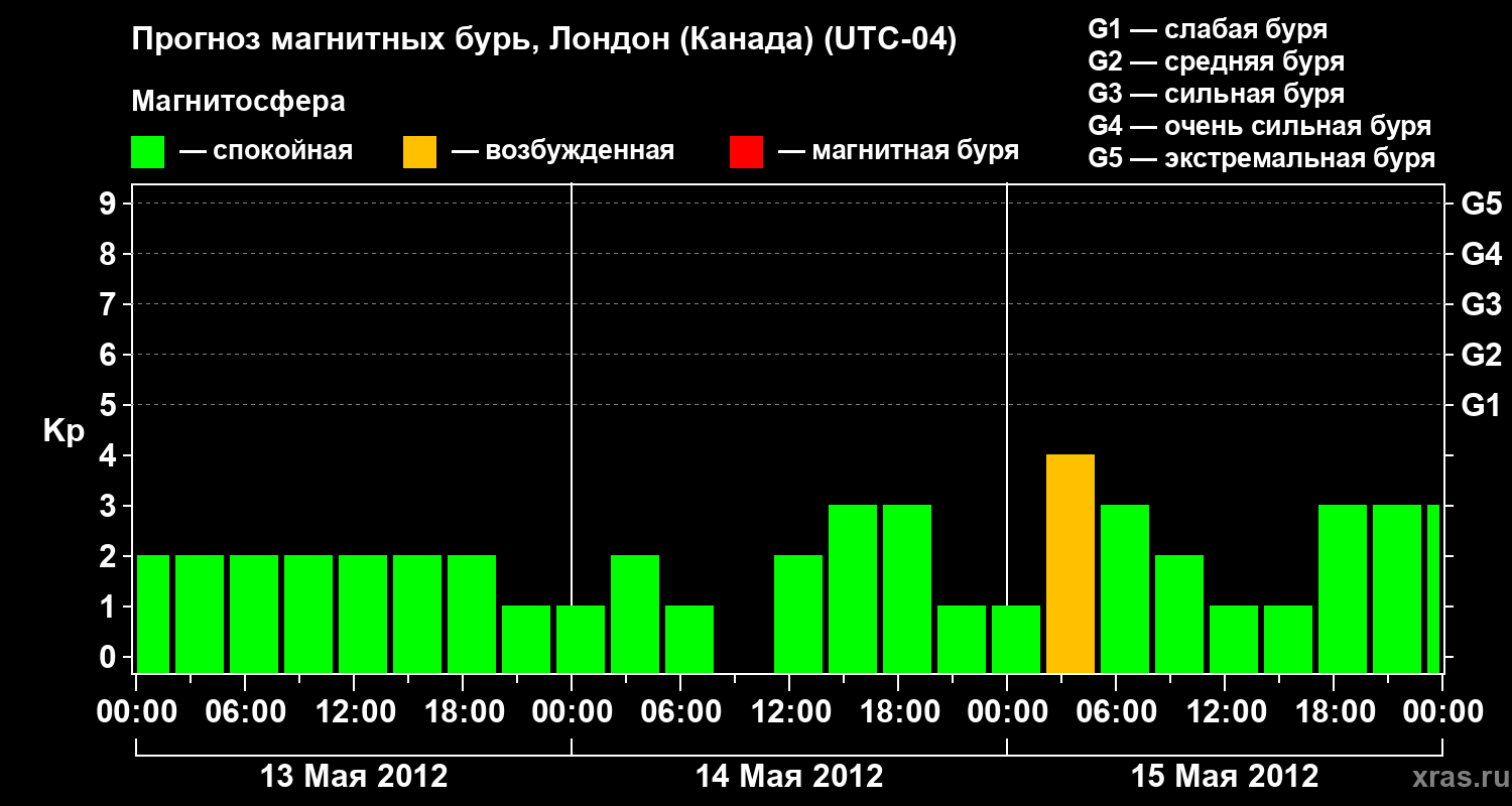 Прогноз магнитных бурь Лондоне (Канада) — 13 мая 2012 года