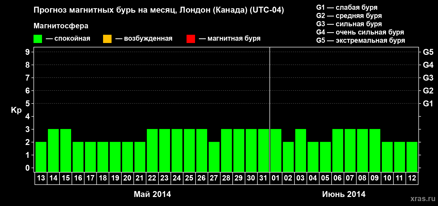Прогноз магнитных бурь Лондоне (Канада) — 13 мая 2014 года